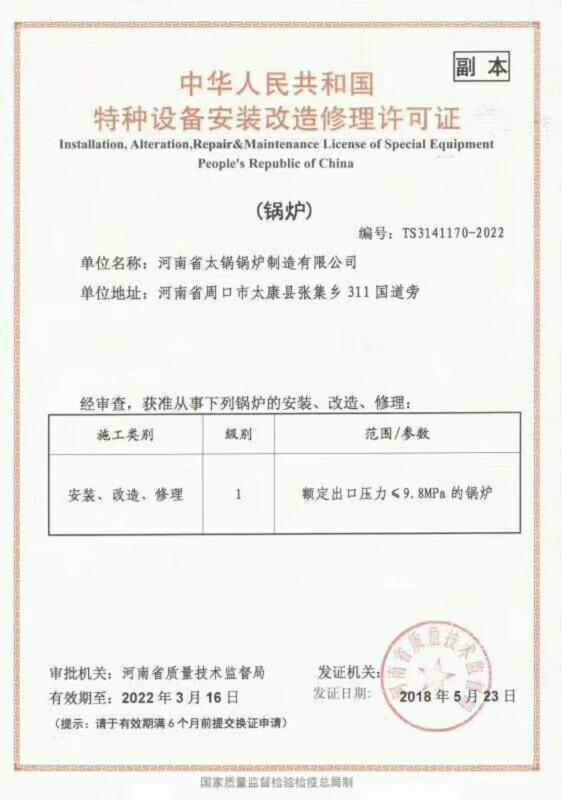 河南省太鍋鍋爐制造有限公司(原河南省太康鍋爐廠始建于1976年)始建于70年代初,經(jīng)40多年的艱辛探索,靠科技興業(yè),走科學(xué)管理之路,現(xiàn)已發(fā)展成為承接制造、安裝、設(shè)計大、中型供熱系統(tǒng),生產(chǎn):SZS燃油燃氣蒸汽鍋爐、燃煤蒸汽鍋爐、燃油鍋爐、燃氣鍋爐、電加熱鍋爐、生物質(zhì)鍋爐、茶水鍋爐、有機熱載體鍋爐、熱風(fēng)鍋爐,蒸壓釜、燃油蒸汽鍋爐、燃氣蒸汽鍋爐、燃油熱水鍋爐、燃氣熱水鍋爐并承擔安裝120噸熱水鍋爐、蒸汽鍋爐,生物質(zhì)鍋爐,加工制造一、二類蒸壓釜、壓力容器,化工機械的省一級**企業(yè)。